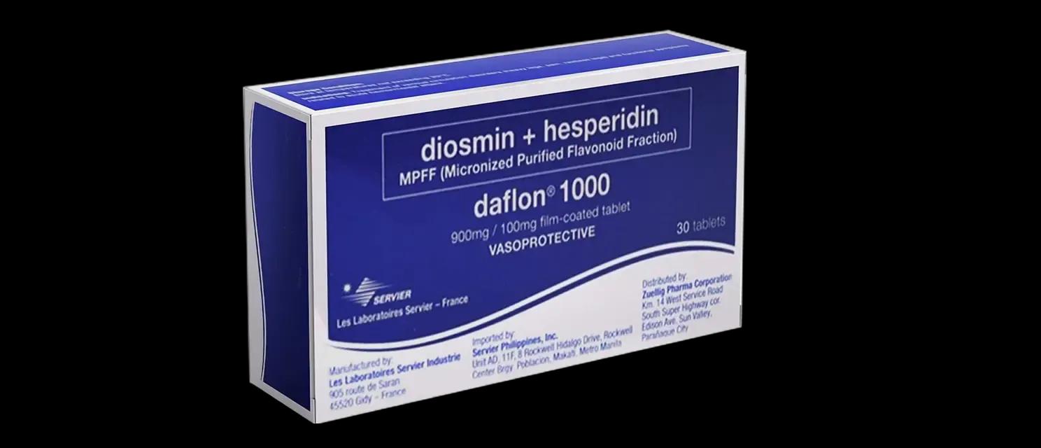 Diosmin + Hesperidin (Daflon® 1000) has a dual mechanism of action; its venous anti-inflammatory action venoprotective reduces pain and swelling; it also protects the capillaries or tiny blood vessels to improve microcirculation and venous tone for better vein health and relief of symptoms such as leg pain, and swelling. 2